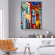 Dieses Bild zeigt ein abstraktes Bild von bunten Stadthäusern. Dieses moderne Kunstposter ist in den Farben Grün, Rot, Orange, Gelb und Blau gehalten. Dieses lebhafte Print ist perfekt für jeden Raum geeignet und eignet sich besonders für Zimmer mit zeitgenössischer oder moderner Ästhetik.