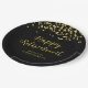 Teller mit Schwarz-Gold-Thema mit einem goldenen Glitzer-Konfetti-Rahmen und dem Titel HAPPY RETIREMENT in einem modernen Skript-Schriftart. Personalisieren Sie es mit dem Namen des Rentners, der Anzahl der Dienstjahre und dem Namen oder der persönlichen Nachricht des Unternehmens, der Schule oder der Organisation. Kontaktieren Sie den Designer über den Zazzle Chat oder makeitaboutyoustore@gmail.com , wenn Sie dieses Design modifizieren möchten, ein anderes Produkt erwerben möchten oder gerne Artikel koordinieren möchten.