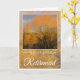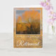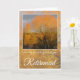 Happy Retirement, mit Bäumen im Winter rund um einen See reflektiert gegen orange Sonnenlicht. Im Text steht: Wir wünschen Ihnen eine lange und glückliche Rente