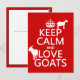 Das Design lautet "Behalt Ruhe und Liebe Ziegen". Zwei Ziegen Silhouetten stehen auf den Briefen. Es ist ein wunderschönes Design, großartig für jeden, der mit Ziegen arbeitet, Ziegen behalte oder nur Ziegen Lieben.