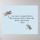 Hübsches Rumi & Dragonfly Landschaftspopster. Zitat: Ich hatte einst tausend Wünsche, aber in meinem einen Wunsch zu wissen, Sie alle anderen geschmolzen weg. Rumi Graphic: zwei metallische Libellen auf hellblauem Hintergrund