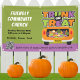 Laden Sie Ihre Gemeinde zu einem freundlichen Trunk- oder Leckerei-Event in Ihrer Gemeinde, Schule, Gemeindezentrum oder anderen Orten ein. Kid-freundlicher Stamm oder Leckerei Banner mit QR-Code, Organisationsname und Details zum Event. Lila, orange, grün, schwarz und weiß, die Farben sind modern. Ideal für Ihren Herbst Halloween Runk oder Leckerei Event.