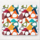 Dieses Mauspad hat ein modernes Design aus verstreuten Dreiecken, einige mit Löchern, in Retrofarben.