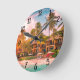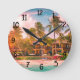 Tropische Wanduhr für konstante Genauigkeit. Die Dekoration ist einzigartig und zeigt eine tropische Hotelszene mit Bäumen und Sonnenuntergang. Es wird die Ästhetik Ihrer Mauer auf der Zuhause, im Büro, in Institutionen und öffentlichen Räumen verbessern.