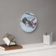 Runde Wanduhr mit dem Bibelverse Matt 10:29 auf hellblauem Hintergrund mit einem Bild eines Vogels auf einem blühenden Ast. Ein perfektes Geschenk für einen Christlichen Freund.