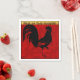 Moderne und klassische Illustration mit einer schwarzen Silhouette eines Roosters und verzierter roter Schrift als Hintergrund + Jahr des Rosters auf eine kleine goldene Band. Design auf Papierserviette. Erhältlich mit einem anderen Design mit der gleichen Schrift. Matching Paper plate, greeting card, postage, Aufkleber, rote Umschläge und viele andere Produkte für Neujahr und Geburtstag (Menschen geboren im Rooster-Jahr)... — "The Rooster (vereinfachtes Chinesisch: 鸡; traditionelles Chinesisch: 雞/鷄) ist einer der 12-jährigen Rhythmen von Tieren, die im chinesischen zodiakisch im Zusammenhang mit dem chinesischen Kalender erscheinen. Das Jahr des Roosters wird durch den 酉 der Irdischen Zweigstelle repräsentiert. Der Name wird auch als Hühnchen ins Englische übersetzt. Rooster ist der einzige Vogel, der im chinesischen Zodiac enthalten ist. Man kann sagen, dass Personen, die innerhalb dieser Zeitbereiche geboren sind, im "Jahr des Roosters" geboren waren, aber auch das folgende elementare Zeichen trugen: 26. Januar 1933 - 13. Februar 1934 = Wasserroster, 13. Februar 1945 - 1. Februar 1946 = Holzroster, 3195 7. - 17. Februar 1958 = Brandroster, 17. Februar 1969 - 5. Februar 1970 = Erdroster, 5. Februar 1981 - 24. Januar 1982 = Metallroster, 23. Januar 1993 - 9. Februar 1994 = Wasserroster ster, 9. Februar 2005 - 28. Januar 2006 = Waldroster, 28. Januar 2017 - 16. Februar 2018 = Feuerroster. " - Wikipedia
