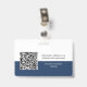 Dieses maßgeschneiderte Abzeichen für Minimalistische Firmenmitarbeiter mit Foto, Qr-Code scannen oder Bar-Code scannen und Firmenlogo wird einfach personalisiert. Ein einfaches Business-Design mit rundem Foto, in marineblau-weiß-farbenen, vollständig anpassbaren Vorder- und Rücken-Größen, serifenlosen, einfachen und modernen Schriftart und einem beruflichen und klaren Look. Erhältlich mit Lanyard, Metallklammer oder mit Retraktikett. Keine Mindestbestellung.