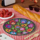 Einzigartige Folklorekomposition mit wunderschönen Schnitt-Stil-Blume, inspiriert von der Volkskunst Wycinanki aus Lowicz Paper Plate. Niedlich als Geschenk für volkstümliche Menschen.