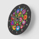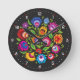 Einzigartige Folklorekomposition mit wunderschönen Cut-out-Blume, inspiriert von Volkskunst Wycinanki aus Lowicz Round Clock. Niedlich als Geschenk für volkstümliche Menschen.