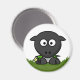 Cartoon um Schafe mit Blume im Mund auf lustigen Kühlschrankmagneten.