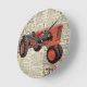 Rundwanduhr mit Bild eines Vintagen Traktors gegen Vintages Zeitungspapier.