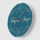 Runde Wanduhr mit dmask Hintergrund, goldenen Verzierungen und weißem Text