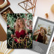 Verkünden Sie Ihren bevorstehenden Abschluss mit Lieblings-Fotos und dieses so einfach, ein wenig Retro, Design. Die Titelzeile und die Details der Vorderseite liegen in Ihrer Wahl: Gold, Silber oder Rose. Verwenden Sie die Rückseite, um zusätzliche Fotos und/oder Feierlichkeiten anzuzeigen.