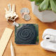 Eine Spiralrunenbewegung im Stil von Glorantha RuneQuest, die in eine schwarze obsidianische Felssäule eingemeißelt ist, die in einem Waldhain stehend ist. Durch Martinspixs.