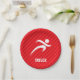 Cooler, farbenfroher Läufer, Lauf, Marathonläufer, Sprinter, Langstreckentrainer, Sportdesign auf roten, knarbig roten Diagonalstreifen. Perfektes Geschenk für Baby, Kleinkind, Kinder, Kinder, Jugendliche oder Erwachsene! Das Design wird personalisiert, indem ein Kindername oder ein eigener Text mit sportlich-sportlich-sportlich-weißem Schriftart hinzugefügt wird. Besuchen Sie unseren Shop, Birthday Party House, für mehr große personalisierbare Jungen und Mädchen Produkte!