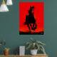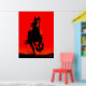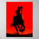 Feiern Sie Kraft und Freiheit mit diesem auffallenden Pferdeposter. Eine galoppierende schwarze Silhouette bricht auf einem hellroten Hintergrund nach vorne, strahlt Bewegung aus und roh Power. Ideal für Tierfreunde, moderne Innenräume oder als kühnes Statement in jedem Raum.