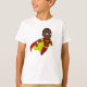 T - Shirt von Kindern mit einer Illustration eines niedlich lächelnden Afroamerikaner-Superhelden, der rote und gelbe Kostüme und Kap trägt