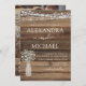 Photo QR Code Rustic Farmhouse String Lights et Jar of Baby's Breath Wedding Invitations on Wood arrière - plan - comprend une belle et élégante typographie de script avec la ferme Country House Sparkle moderne pour la célébration spéciale de mariage.