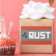 Bannerkonfiguration: Schwarz auf grauem Symbol, Weiß RUST auf grauem Rechteck.