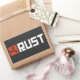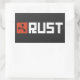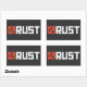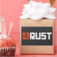 Bannerkonfiguration RUST: Schwarz auf rotem Symbol, Weißer RUST auf einem leeren Hintergrund.