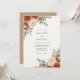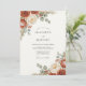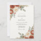 A lush botanical arrangement featuring deep rust roses, cream-colored blooms, and a striking king protea defines this artwork. Wispy sage green eucalyptus leaves and dried foliage create a whimsical, bohemian aesthetic. The warm, earthy color palette evokes a romantic autumnal mood for any seasonal event.