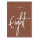 Einfache und schicke Tischnummer-Karten im Erdton Rost braun und Weiß machen eine elegante Aussage bei Ihrer Hochzeit oder Veranstaltung. Das Design bietet "table [number]" in einem spannenden Mix aus klassischen Serifen und handgeschriebenen Skripten. Design wiederholt sich auf beiden Seiten. Einzelne nummerierte Karten werden separat verkauft; bestellen Sie jede Tischnummer einzeln aus unserer Sammlung.