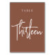 Einfache und schicke Tischnummer-Karten im Erdton Rost braun und Weiß machen eine elegante Aussage bei Ihrer Hochzeit oder Veranstaltung. Das Design bietet "table [number]" in einem spannenden Mix aus klassischen Serifen und handgeschriebenen Skripten. Design wiederholt sich auf beiden Seiten. Einzelne nummerierte Karten werden separat verkauft; bestellen Sie jede Tischnummer einzeln aus unserer Sammlung.