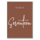 Einfache und schicke Tischnummer-Karten im Erdton Rost braun und Weiß machen eine elegante Aussage bei Ihrer Hochzeit oder Veranstaltung. Das Design bietet "table [number]" in einem spannenden Mix aus klassischen Serifen und handgeschriebenen Skripten. Design wiederholt sich auf beiden Seiten. Einzelne nummerierte Karten werden separat verkauft; bestellen Sie jede Tischnummer einzeln aus unserer Sammlung.