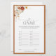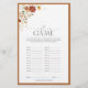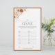 Modernes, elegantes Brautparty-Spiel "The Schürze Game" mit einem blumengeschmückten Aquarellbouquet in trendigen, warmen, neutralen Farbtönen, Weiß, Gelb und Brand sienna, umgeben von einer Rostbrunnenorange. Teil einer koordinierten Suite. Suite hier ansehen: https://www.zazzle.com/collections/elegant_orange_watercolor_floral_bridal_shower-119388823689132589 Kontakt-Designer für passende Produkte. Copyright Anastasia Surridge für Elegant Invites, alle Rechte vorbehalten.
