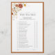 Modernes, elegantes Brautparty-Spiel "sagte er, sagte sie" mit einem floralen Aquarelle-Bouquet in trendigen, warmen, neutralen Farbtönen, weiß, braun gelb und verbrannt sienna, grenzt an eine koordinierende Rost verbrannte Orange. Personalisieren Sie Ihre Fragen in weichem Offschwarz, betont durch schöne moderne handgeschriebene Kalligraphie. Teil einer koordinierten Suite. Suite hier ansehen: https://www.zazzle.com/collections/elegant_orange_watercolor_floral_bridal_shower-119388823689132589 Kontakt-Designer für passende Produkte. Copyright Anastasia Surridge für Elegant Invites, alle Rechte vorbehalten.