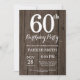 Rustic 60th Birthday Invitation. Arrière - plan rustique en bois. Anniversaire vintage du Retro. Anniversaire adulte. Hommes ou Femmes Anniversaire Invitation. 13ème 15ème 16ème 18ème 20ème 21ème 30ème 40ème 50ème 60ème 70ème 80ème 90ème 100ème, Tout âge. Pour plus de personnalisation, cliquez sur le bouton "Customiser" et utilisez notre outil de conception pour modifier ce modèle.