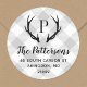 Maßgeschneiderte Rundaufkleber mit Rücksendeadresse personalisiert mit Ihrer Familienmonogramm und Adresse. Dieses moderne rustikale Design zeichnet sich durch ein Monogramm aus, das zunächst mit Hirschantlern auf grauem und weißem Büffel-Karo-Hintergrund erstellt wurde. Verwenden Sie die Designtools, um die Hintergrundfarbe und die Schriftart zu ändern, um Ihr eigenes, einzigartiges Design weiter anzupassen. Ideal für die Behandlung von Urlaubskarten, Hochzeitsartikeln und vieles mehr.