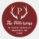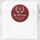 Maßgeschneiderte Rundaufkleber mit Rücksendeadresse personalisiert mit Ihrer Familienmonogramm und Adresse. Dieses moderne rustikale Design besticht durch ein Monogramm-Original mit Hirschantlern in den Farben Bordeaux und Weiß. Verwenden Sie die Designtools, um die Hintergrundfarbe und die Schriftart zu ändern, um Ihr eigenes, einzigartiges Design weiter anzupassen. Ideal für die Behandlung von Urlaubskarten, Hochzeitsartikeln und vieles mehr.