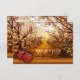 Une carte RSVP élégante avec l'image d'un verger de pommiers et de pommes aux couleurs chaudes et rouges.