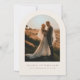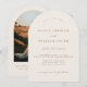 This invitation features a modern arch shape with a rustic boho twist. It has a beautiful field photo frame on one side and customizable text on the other. This elegant template allows couples to easily add their names, date, venue, and a personal photo. Maximum customization makes it easy to personalize for any rustic, modern, or bohemian-style wedding.