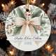 Rustic Baby's 1. Weihnachtsgebäck Beige Bow Keramik Ornament erweckt den Charme eines Neugeborenen der ersten Urlaubssaison. Die Vorderseite zeigt einen zarten, beigen Bogen mit grünen Blätter und Terrakotta-Beeren, Set auf weißem Hintergrund. Unter dem Bogen, ein individuelles Jahr und der Name Ihres Babys in elegantem Skript machen es einzigartig. Der Rücken ist mit einer süßen Botschaft versehen: "Der Zauber der Weihnachtszeit beginnt bei dir, unserem Kleinen." mit einer letzten Touch, "mit Liebe, Mama und Vater." Ideal für Eltern, um ihr wertvolles Kind zu schenken, verleiht dieser Sake jedem Urlaubsgeschenk Wärme und Stimmung und macht jedes Weihnachtsfest unvergesslicher. Klicken Sie auf "Personalisieren Sie diese Vorlage", um das Jahr, den Namen Ihres Kindes oder eine spezielle Nachricht hinzuzufügen und so einen einzigartigen Schatz für Ihren Urlaub zu schaffen. #generativecontent