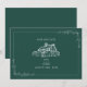 Illustration der rustikalen Scheune oben mit Linie Kunst botanischen Rand. Hintergrund ist dunkle Smaragdfarbe.
