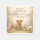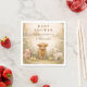 A charming countryside design featuring a fluffy calf, a sweet little lamb, and tiny yellow chicks nestled among soft meadow wildflowers. The warm parchment background and muted earth tones create a cozy, rustic atmosphere with a gentle storybook feel. Delicate greenery frames the layout while the farm animal illustration adds warmth and personality. Perfect for a neutral rural-themed celebration with classic farmhouse charm.