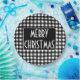 Rustic Black & White Buffalo Plaid Merry Christmas Pappteller