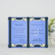 Floral bleu rustique - © Sunny Mars Designs. Unique classe formelle personnalisable personnalisé vintage rouillé élégant programme de mariage modèle avec des bordures de ruban, moderne joli fleurs blanches sur vieux arrière - plan de papier parchemin.