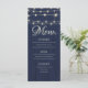 Introducing our captivating rustic wedding menu, featuring twinkling string lights against a dark navy wood effect backdrop. Perfect for a rustic barn-themed celebration, this menu is easy to customise.