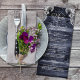 Rustikal blaues Holz Spitzen Hochzeitsmenü.