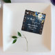 Ein elegantes Hochzeitsdesign mit eleganter Kalligrafie, ergänzt durch wunderschönes blaues Holz, grüne Saitenleuchten und weißblaue Blumen mit goldenem Glitzer. Sie können dies mit Ihren Daten personalisieren.