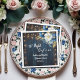 Ein elegantes Hochzeitsdesign mit eleganter Kalligrafie, ergänzt durch wunderschönes blaues Holz, grüne Saitenleuchten und weißblaue Blumen mit goldenem Glitzer. Sie können dies mit Ihren Daten personalisieren.
