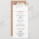 Dieses rustikale, elegante und blumengeschmückte Hochzeitsprogramm eignet sich perfekt für eine Hochzeit in Urlaubsort. Die Einrichtung besteht aus Aquarellcreme, weißen, braunen Blume und grünem Pampasgras in eleganten Bouquets.