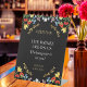 Fleur sauvage coloré Affiche de bienvenue de Mariage photo avec des fleurs d'aquarelle y compris trèfle, pavot, ne m'oubliez pas, crocus, jonquille, bluebell et fleur de pasque avec des éléments botaniques verts et cadre doré sur un arrière - plan noir. Parfait pour un mariage rustique de printemps ou d'été. Personnalisez le signe mariage en ajoutant le nom de la mariée et du mariée, la date du mariage et votre photo de fiançailles préférée. Veuillez consulter ma collection Colorful Spring Fleur sauvage Meadow pour obtenir des articles mariages plus correspondants.