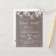Rustic Boho Virtual Bridal Shower Invitation Carte postale sur un arrière - plan en bois rustique avec une chaîne de guirlandes de mason et de magnifiques fleurs bordeaux et roses. Partie d'une collection.