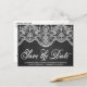 Élégant enregistrer la carte de date avec la typographie et la dentelle florale sur l'arrière - plan de tableau noir. D'autres couleurs et articles similaires sont disponibles. Il s'agit d'une partie d'une suite mariage.