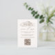 Rustikale Hochzeitskarten mit brauner Skizze einer Scheune, die oben auf der Einladung auf einem cremefarbenen Hintergrund angezeigt wird. Personalisieren Sie die RSVP Hochzeitkarte mit Ihrem gewünschten UAWG und Anweisungen, wie Sie auf Ihrer Hochzeitswebsite UAWG. Aktualisieren Sie den QR-Code mit Ihrer gewünschten URL, damit Sie Ihre Hochzeit oder andere besondere Veranstaltung einfach scannen und auf Ihre UAWG übertragen können.