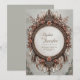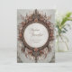 Set a warm and inviting tone for your celebration with this beautifully detailed circular design. The artwork features a stunning wreath composed of textured brown and tan feathers, layered with clusters of dusty rose and mauve blossoms. An intricate, dark antique-style frame surrounds the central text area, decorated with filigree details that add a touch of vintage elegance to the rustic composition. The earthy color palette creates a cozy, organic aesthetic that feels both sophisticated and grounded. This design is a perfect match for an autumn barn wedding or a countryside ceremony held during the fall foliage season. You might also select this earthy style for a neutral baby shower, a milestone birthday dinner, or a sophisticated thanksgiving gathering. This decorative nature border is also perfectly suitable for artisan craft business cards, holistic wellness retreat flyers, or organic skincare product labels.